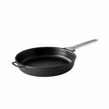 Vankka, Ruotsissa valmistettu paistinpannu/piirakkavuoka ruotsalaisesta hiiliteräksestä. Tässä mallissa on kahva, jonka voi kiinnittää ja irrottaa helposti peukalo-otteella. Pannu on esipoltettu kasviöljyillä, joten se on heti käyttövalmis oston jälkeen eikä vaadi omaa sisäänpolttoa. Se kestää korkeita lämpötiloja ja jakaa lämmön tasaisesti ja tehokkaasti, mikä tekee siitä täydellisen paistamiseen ja paahtamiseen. Sopii kaikille lämmönlähteille ja uuniin. Käytä sekä paistinpannuna että piirakkavuokana. Ilman kahvaa pannu vie vähemmän tilaa uunissa ja ruokapöydässä ja on helpompi pinota säilytyksessä.